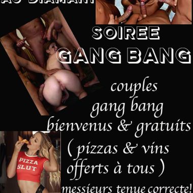 bonjour , Nous serons ouvert les jeudis de 21h à 1h en soirée gang bang (pizzas & vins offerts), vendredi & samedi en soirées mixtes à thèmes voir les flyers sur le site ! Et en après midi juste pour les gang bang organisés , n hésitez pas à nous les demander . attention téléphone portable interdit à l'intérieur du club ! Le plaisir de retrouver notre clientèle libertine & ces membres * le petit club sur Lyon ou l ' on baise encore ..... 1 inscription = 1 cocktail offert 24 rue des MACCHABÉES 69005 LYON infoline: 04 72 57 76 90 diamantlibertin@hotmail.fr infos accès & club : www.diamant-libertin.com __________________ INFORMATION IMPORTANTE: Les hommes seuls sont acceptés sous réserve d'acceptation à l'entrée. Hygiène absolue obligatoire. Tenue correcte exigée. Basket ,jeans déchiré , t-shirt, polaire interdit. personnes alcoolisés / personnes en groupe ( 2 ,3 , 4 ....) seront refusés . nous privilégions l entrée a nos habitués !! mesdames tenues sexy j