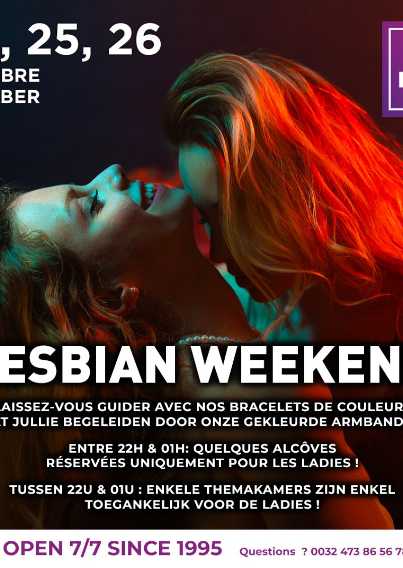 LESBIAN WEEKEND Grâce à nos bracelets de couleurs, exprimez vos préférences et fantasmes sexuels en toute simplicité ! Un petit coup de pouce ne fait jamais mal, n’est-ce pas ????? SHOWS ! LESBIAN WEEKEND Dankzij onze gekleurde armbandjes wordt het voor jullie heel eenvoudig om jullie seksuele voorkeur of fantasie aan te geven! Een ‘duwtje’ in de rug kan nooit geen kwaad, toch? ???? SHOWS!